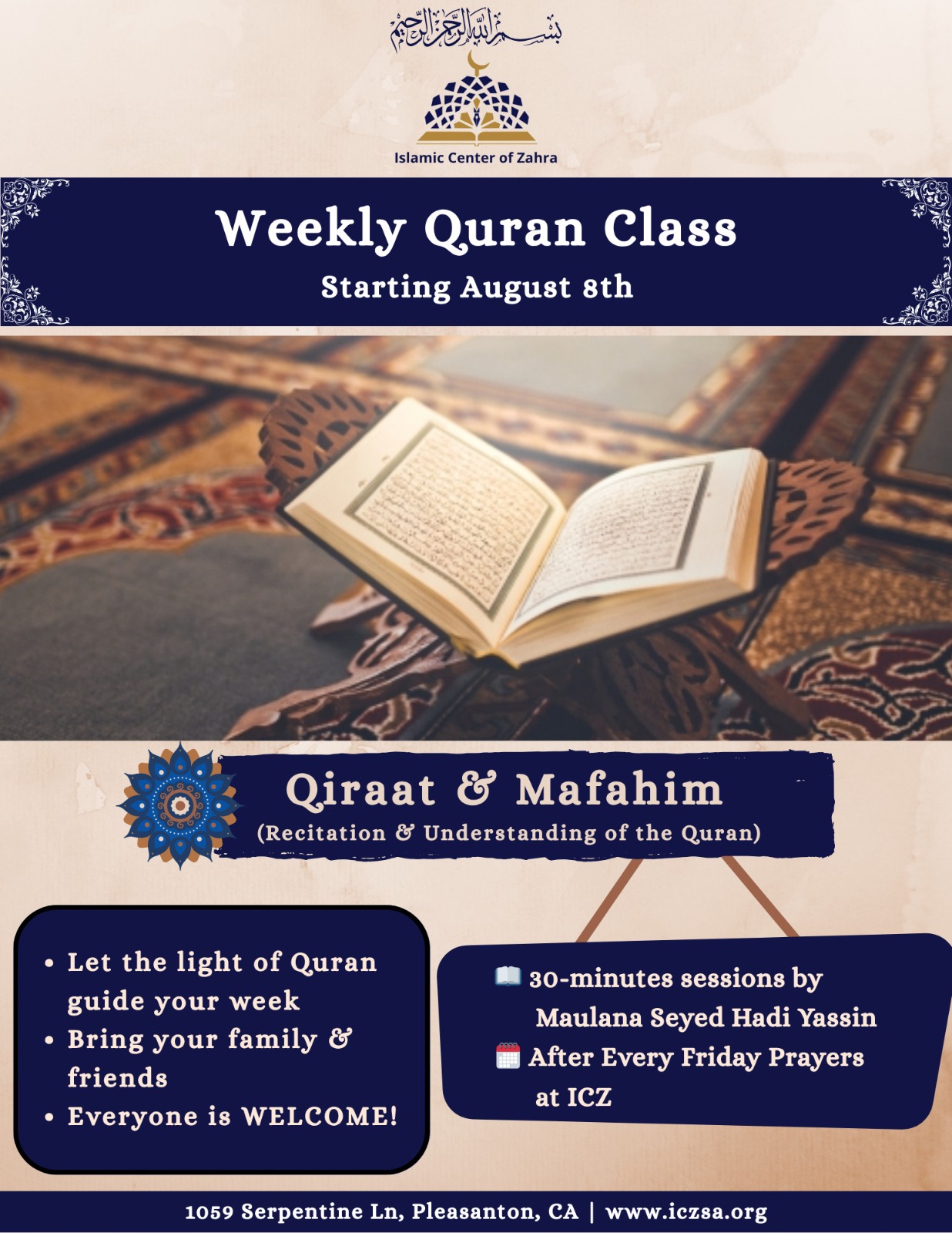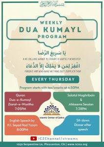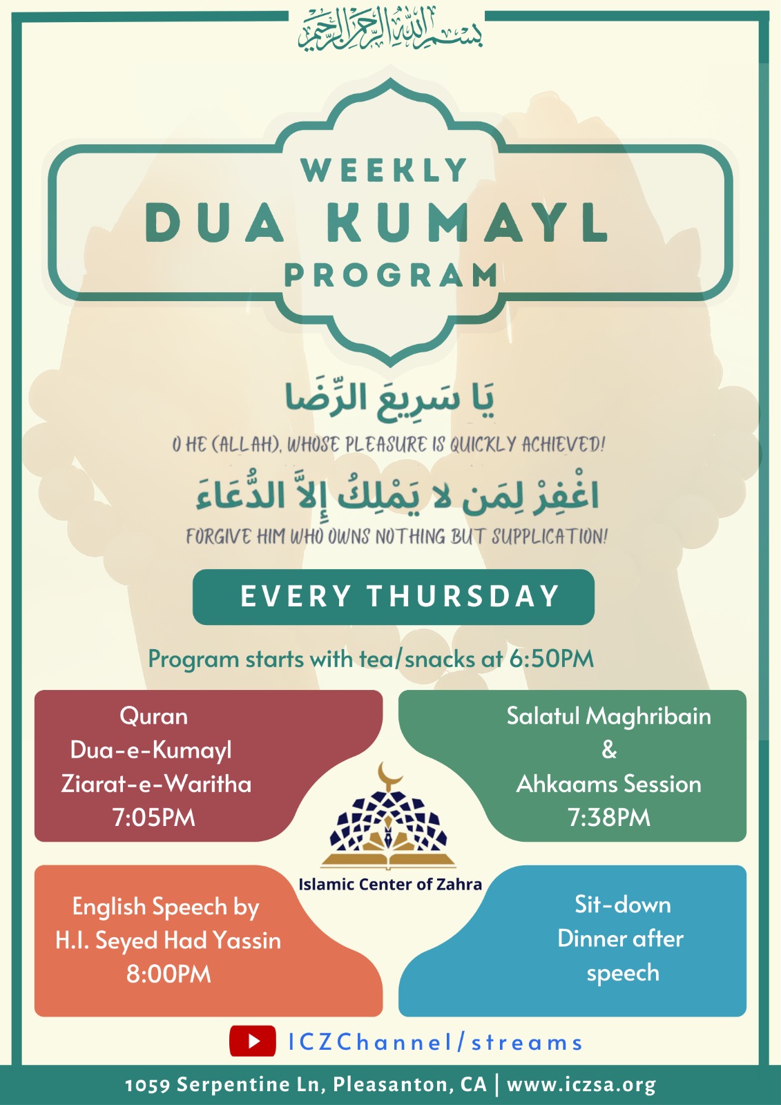 Quran, Dua-e-Kumayl, Ziyrath-e-Wartha | 6:45 PM |