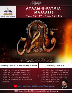 | Quran, Hadith-e-Kisa | 8:00 PM |